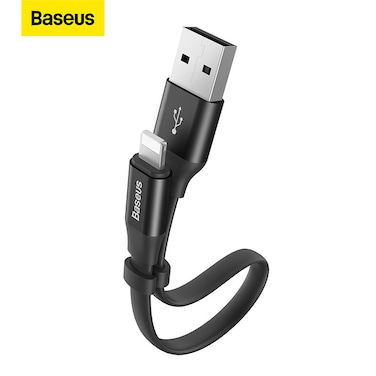 Baseus Nimble USB-A to Lightning Flat Cable 23cm- Ultra Portable iPhone/iPad/AirPods Charge Sync Cable for iPhone 13, 12, 11, 11 Pro, 11 Pro Max, XS, XS Max, XR, X, 8SE/8/8 Plus and More Black