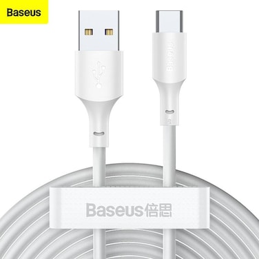 Baseus Type C Cable 1.5m 2Pack Fast Charging 5A USB A to USB C Data Cable Compatible with Samsung Galaxy, Nintendo Switch, Huawei MateBook X Pro, iPad mini 6 and many more White