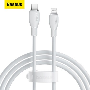 Baseus USB C To Lightning 1.2M Fast Charging Power Delivery PD 20W Cable For iPhone 14/14 Pro/14 Plus/14 Pro Max, iPad Pro And iPhone 8-13 All Series White