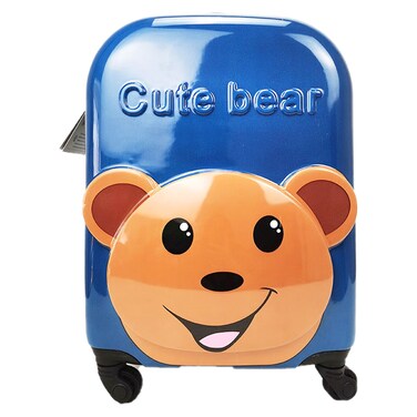 ريفلكشن حقيبة سفر بعجلات متحركة 4 وبغلاف صلب مطبوع عليها دب بشكل لطيف، باللون الأزرق، بمقاس 41 سم