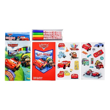 ديزني بيكسار مجموعة تلوين سيارات مع كتاب تلوين و4 أقلام تلوين قابلة للغسل و ورقتين من الملصقات