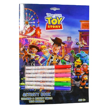 يتضمن الكتاب شخصيات محبوبة من فيلم توي ستوري الشهير. يمكن للأطفال الاستمتاع بالتلوين وحل الألغاز وإكمال المتاهات، و ذلك مع أكثر من 50 صفحة من المحتوى الجذاب.