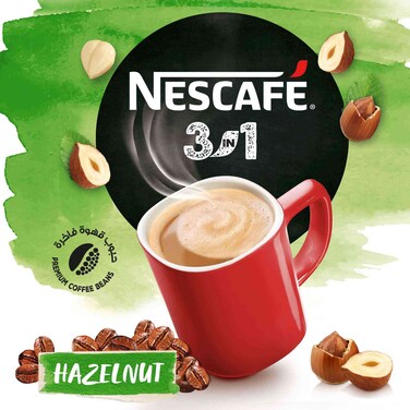 نسكافيه 3 في 1 مزيج القهوة سريعة التحضير بالبندق 17 غرام عبوة من 10 قطع