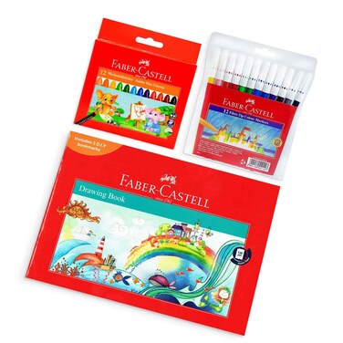 فايبر كاستل كتاب رسم بحجم أي 4 مع أقلام تلوين شمعية 12 قطعة و أقلام فاين لاينر 12 قطعة - متعددة الألوان -