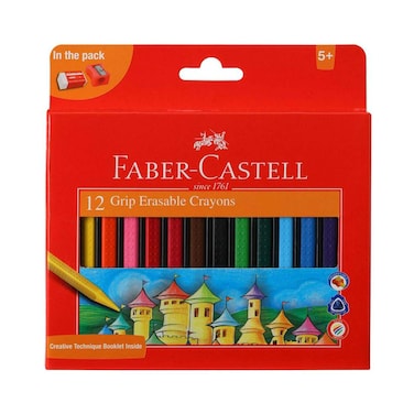 فابر كاستال غريب أقلام شمعية ملونة قابلة للمسح، 12 قطعة - متعددة الألوان.