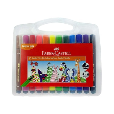 فابر كاستل جامبو أقلام تحديد ملونة برأس من الألياف 12 قطعة - متعدد الألوان