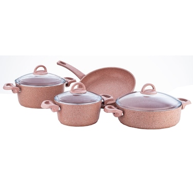 هوم ميكر طقم قدور من الغرانيت 7 قطع - وردي