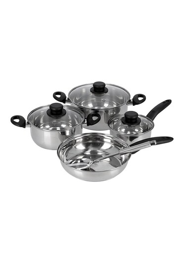 طقم أواني طهي من الستانلس ستيل 8 قطع من ديلكاسا-فضي-24 × 11.5 سم