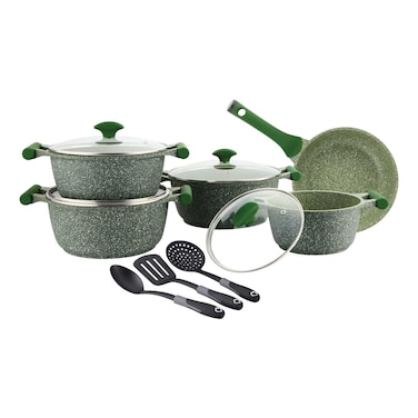 بريستيج إسنشيالز طقم أواني طهي غير لاصقة من الغرانيت 12 قطعة- أخضر وأسود