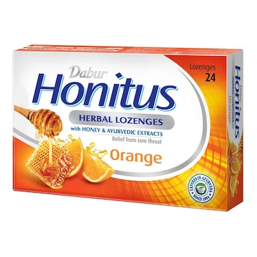 دابر هونيتوس أقراص إستحلاب عشبية بنكهة البرتقال لتخفيف إلتهاب الحلق 24 قرص