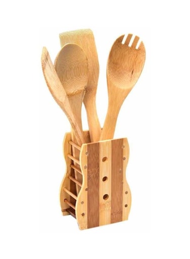 مجموعة ملاعق الطهي 5 قطع مع حامل ملعقة من رويال فورد-بيج/بني 30 × 6 × 0.5 سم