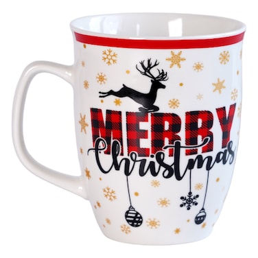 كوب خزف صيني جديد مطبوع عليه عبارة Merry Christmas سعة 340 مل