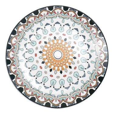 يتميز بتصميم مطبوع عليه جميل يضيف لمسة أنيقة إلى أي تقديم طاولة. هذا الطبق مثالي لتقديم الحلويات والوجبات الخفيفة أو المقبلات