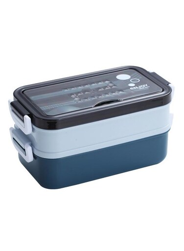 صندوق طعام بينتو لانش بوكس للكبار والأطفال مع قسمين و 2 فواصل ومجموعة أدوات المائدة لون أزرق