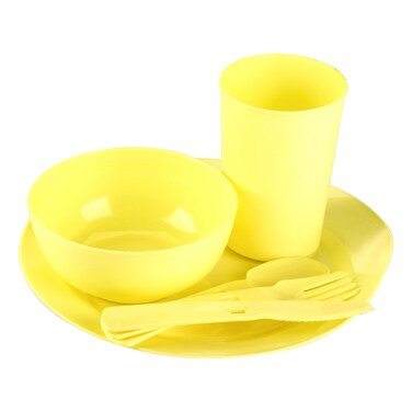 طقم أدوات مائدة بلاستيكية مسطحة - أصفر 6 قطع