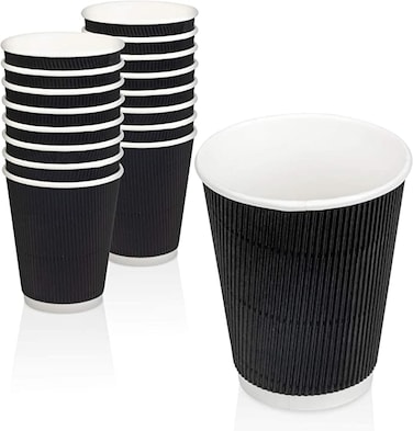 YESOCEA [50 كوب] 8 أونصة. أكواب قهوة سوداء للاستعمال مرة واحدة - أكواب ورقية ثلاثية تموج الساخنة للشاي والمشروبات أثناء التنقل