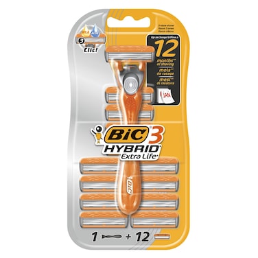بيك 3 هايبرد إكسترا لايف ماكينة حلاقة ثلاثية الشفرات مع 12 رأس برتقالي 13 قطعة