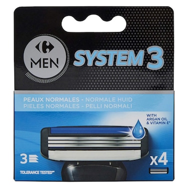 كارفور سيستم ماكينات حلاقة بـ 3 شفرات، 4 رؤوس بديلة للرجال