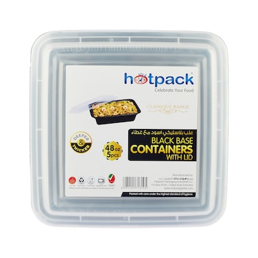Hotpack Black Base Rectangular Container 48 ounce with Lids, 5 Pieces
