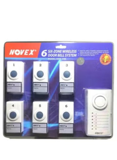 نظام جرس الباب اللاسلكي NOVEX ذو 6 مناطق - أصلي، مثالي للمكتب والمستشفى والمطاعم وما إلى ذلك حيث تكون الخدمة مطلوبة داخل ست مناطق.