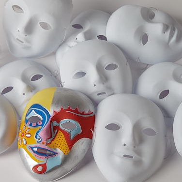 - عبوة مكونة من 12 قناع للوجه من البلاستيك للأطفال مثالي لنشاط ماكرة بعد الظهر. ببساطة تزيين بالطلاء والأقلام واللمعان وأكثر لإضافة طابع ملون إلى وقت اللعب. مثالية لحفلات الأطفال - من ستجدين خلف القناع؟