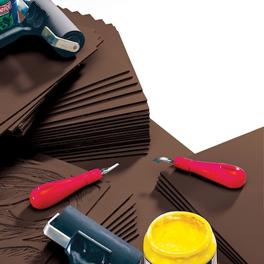 • لينو قياسي بسمك 3.5 مم لطباعة لينو. ما عليك سوى نقش تصميمك في لينو وتنظيفه بالروح الميثيلة قبل التحبير. لتسهيل العمل ، قم بتدفئة لينو على مبرد لمدة 5-10 دقائق أو سخنه بمجفف شعر لبضع دقائق لجعله أكثر مرونة. A3.