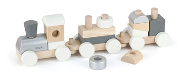- قطار التراص الجديد من فيجا مصنوع من خشب الزان عالي الجودة ، وهو مصمم أيضًا بنمط إسكندنافي. 14 فتحة خشبية سهلة الإمساك على قضبان في السيارات المسطحة ، مما يوفر فرصة رائعة لممارسة المهارات الحركية الدقيقة. لمزيد من قيمة اللعب: يمكن أيضًا استخدام المكعبات للتكديس والبناء والتصنيف ، كما يمكن فصل عربات القطار المتدحرجة لتقصير القطار أو ترك الأطفال للعب به بشكل فردي.