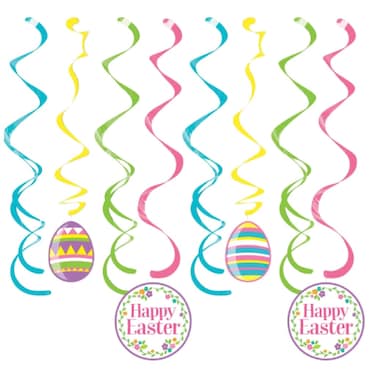 Creative Converting Easter and Spring Clip Dlx Dizzy Danglers is quickly decorate your windows and ceiling or doorways. It is easy to create a festive atmosphere with our hanging swirls. Perfect for decorating a large room, on the tree or outdoor area. Measurement: 7x5 in