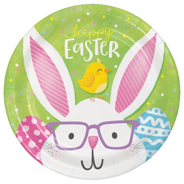 Creative converting happy easter luncheon plates made of high quality material. Our happy easter dessert plates are the perfect choice for your easter celebration. The plates feature an easter bunny, chick and happy easter text. Bright, punchy colours complete the look. The plates measure 7 inches, perfect for serving appetizers and desserts. Sold 8 per package, complete the look with our other easter party supplies. Measurement: 7 inches