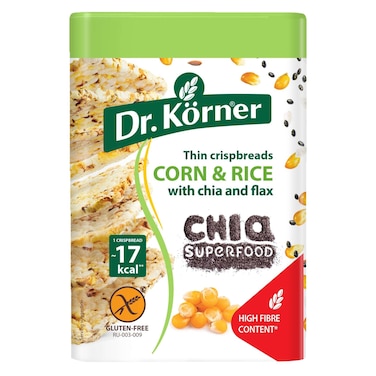 دكتور كورنر خبز مقرمش رقيق بالذرة والأرز مع الشيا والكتان فائق الجودة 100 غرام