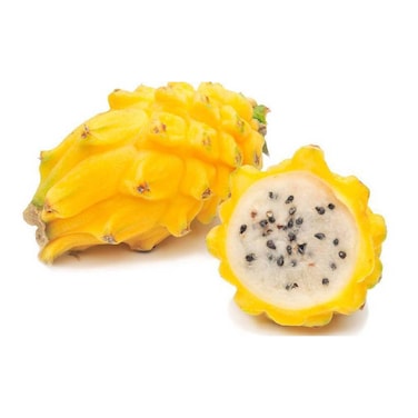 - فاكهة التنين الأصفر لها شكل مستطيل وهي أصغر حجما قليلا من الأصناف الحمراء الأكثر شيوعا