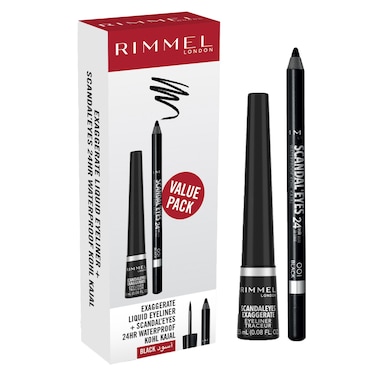 ريميل لندن سكاندال آيز إكساجيريت محدد عيون باللون الأسود مع سكاندال آيز كحل كحلي مقاوم للماء باللون الأسود رقم 001