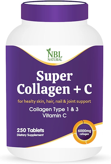 سوبر كولاجين من ان بي ال مع فيتامين C ، ببتيدات الكولاجين من أنواع 1 و 3 للشعر والبشرة والأظافر والمفاصل - 6000 مجم - 250 قرص