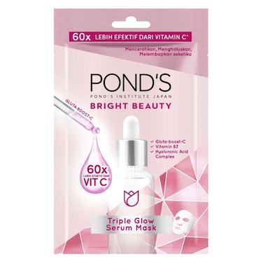 قناع الوجه مع سيروم من بوندس برايت بيوتي، غني بالجلوتا-بوست-سي، وفيتامين بي٣ (نياسيناميد)، وحمض الهيالورونيك اشراقة ثلاثية، يعزز اشراقة البشرة وينعمها ويرطبها، ٢٠غرام