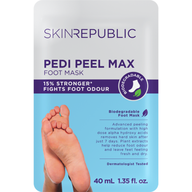 - Biodegradable foot peel mask with 15% stronger acids removes severely dry skin and cracked heels.