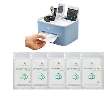 Aiwanto Plastic Tissue Box (Blue) And 5 Pack Disposable Face Towel Desktop Tissue Holder Plastic Tissue Box