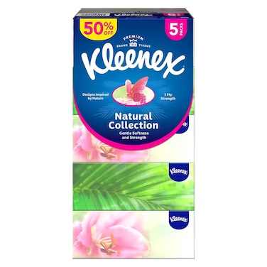 كلينكس مجموعة طبيعية من مناديل الوجه بطبقتين – أبيض 170 منديل حزمة من 5