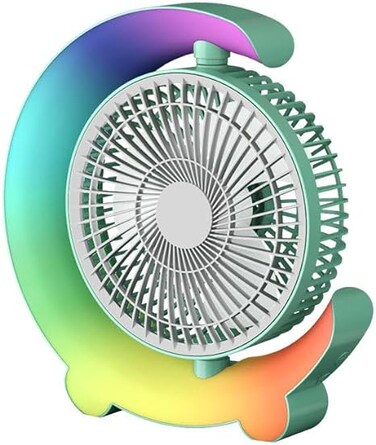 Experience strong airflow with this quiet desk fan. Offering 3 speed settings, mini table design, Type-C charging, and colorful light, it's rotatable for optimal comfort.