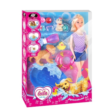 باور جوي ليلى دمية أزياء مع كلب إستحمام - متعددة الألوان