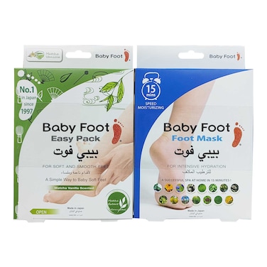 بيبي فوت أريجينال عبوة سهلة الاستخدام لتقشير القدمين بنكهة الماتشا والفانيليا مع قناع للترطيب المكثف للقدمين حزمة من 2 أبيض