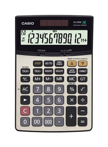 كاسيو - DJ-220D زائد 12 أرقام حاسبة مالية رمادي / أسود
