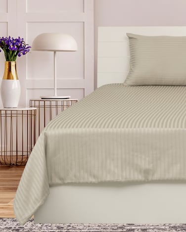 Hotel Linen Klub Queen Bed Sheet 3pcs Set , 100% Cotton 250Tc Sateen 1cm Stripe, Size: 240x260cm + 2pc Pillowcase 50x75cm , Stone