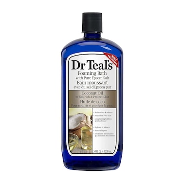 - رغوة الإستحمام من دكتور تيلز بزيت جوز الهند بملح إبسوم النقي لحماية البشرة والإسترخاء والإنتعاش مع رغوة الإستحمام من دكتور تيل