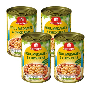 كارفور فول مدمس وحمص 400 غرام حزمة من 4