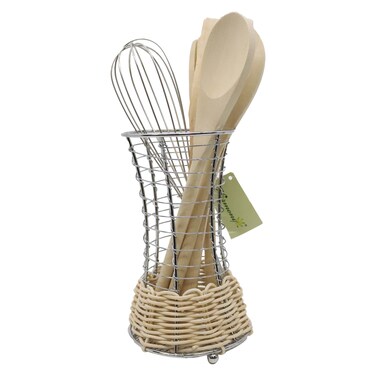يعتبر حامل أدوات المائدة هارموني باللونين الفضي والبيج إضافة أنيقة وعملية لأي مطبخ.