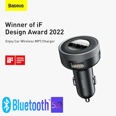 Baseus FM Transmitter Modulator Car Wireless Bluetooth 5.0 USB Fast Charger Auto Aux Radio Mp3 Player Music Hands Free Car Kit Compatible For All Type Of Vehicle Black