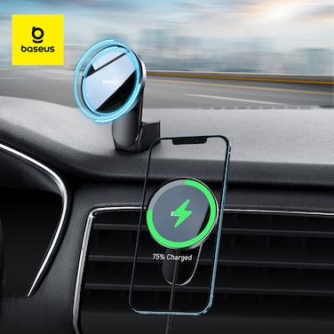 Baseus Wireless Car Charger, 15W Magnetic Mount for [Dashboard & Air Vent] Magnets Fast Charging Magnetic Attachment, Phone Car Holder Mag-Safe Compatible for iPhone 13 & 12 Series