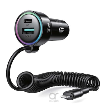 Multi-Device Fast Charging - 50W fast car charger equipped with Lightning cable 20W SUPER FAST Charging output port, PPS PD30W, QC3.0 18W, support PD3.0/QC3.0/AFC and FCP super-fast fast charging protocol. It can charge three devices simultaneously.
