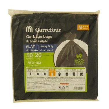كارفور 50 غالون أكياس قمامة مسطحة عالية التحمل، حجم متوسط 20 كيس قمامة - أسود