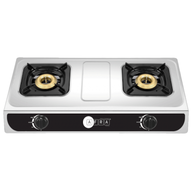 AFRA Japan Two Burner Gas Stove, Brass Caps, Battery Powered Ignition, Tempered Glass Top, Stainless Steel, Double Injection, G-MARK, ESMA, ROHS, and CB Certified, 2 years warranty